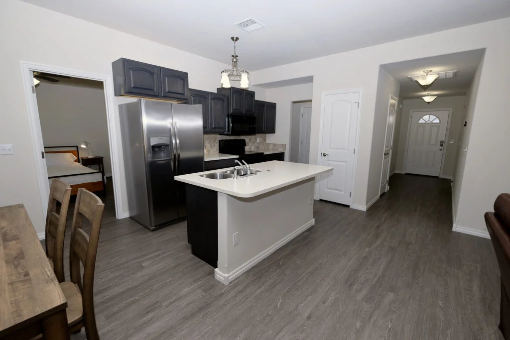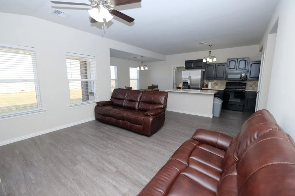 Properties feature 2 Car Garage, Key-code entry for front and back doors, Washer and Dryer, and all the Kitchen necessities. Lawn-care and Utilities are included.